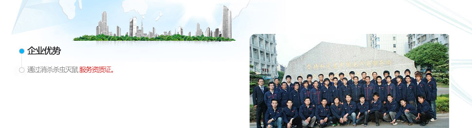 南京清波殺蟲技術服務有限公司是一家專業(yè)從事;有害生物防治、蟲害控制管理、衛(wèi)生防疫消毒、環(huán)境綠化工程與養(yǎng)護服務、清潔服務、殺蟲藥品和器械銷售及售后服務。 我們的服務項目:消滅老鼠、蟑螂、蚊子、蒼蠅、白蟻、跳蚤、臭蟲等衛(wèi)生蟲害的防制工作及環(huán)境消毒。特別是在殺滅德國小蠊及老鼠防治方面有著無可比擬的技術優(yōu)勢。 我們的服務對象:賓館、酒店、超市、商場、商業(yè)大樓、餐廳、食品加工廠、醫(yī)院、各類廠區(qū)、集裝箱、船泊、鐵路車廂、娛樂場所、學校、銀行、航空及公共外環(huán)境等病媒蟲害綜合防制業(yè)務。 我們的優(yōu)勢: 1、專業(yè):我公司擁有一支設備先進及專業(yè)的技術人員組成的消殺隊伍。具有豐富的理論知...更多>